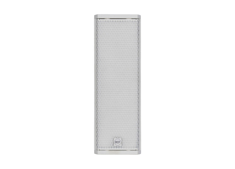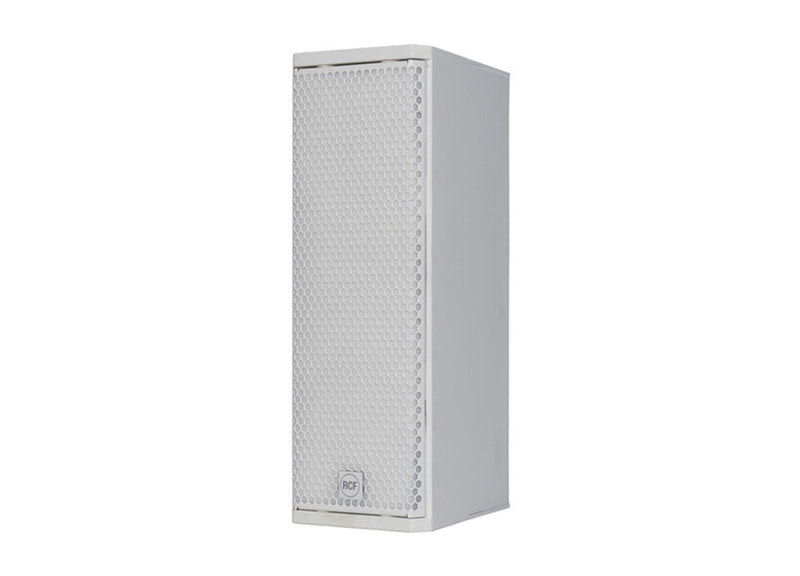 The RCF KX 515-A W Professional 2-Way Active Speaker 2000W, DSP, Weatherproof – White is flexibility, power, and compactness make the KX 515-A ideal for installed and portable professional applications where size and weight are critical factors. This approach combines the advantages of RCF technology such as controlled dispersion, outstanding clarity and extreme power, multiple flexible rigging accessories, weatherproof protection, and RDNET real-time monitoring and management software with recallable presets. Its transducer configuration pairs two custom-loaded 5-inch cone drivers to a rotatable CMD waveguide surrounding a titanium 1.75-inch high-frequency compression driver. Whether it’s used as a compact main system, as fills, or surrounds in a larger system, KX 515-A is quick to deploy and fast to tune.
