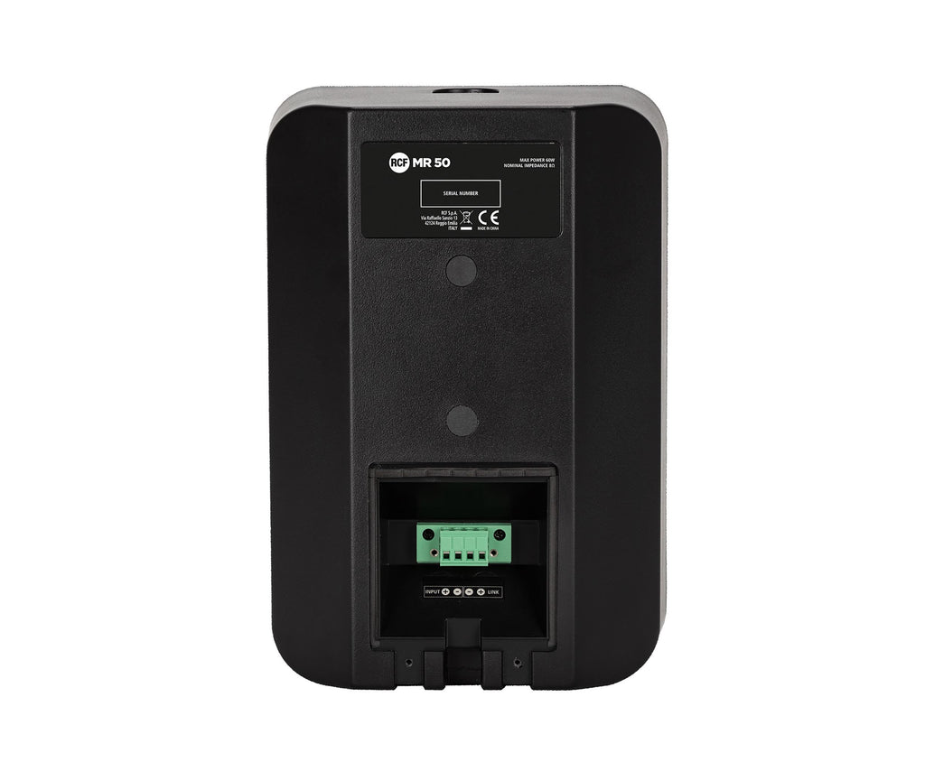 The RCF MR50 5-Inch Two-Way Bass Reflex Passive Speaker 240 Watt - Pair is designed to deliver uncompromised audio performance and high reliability in fixed installations. Blend in with any environment and deliver deep bass, smooth midrange, and finely-detailed high-frequency response. Quality components and careful acoustic design make MR 50 the perfect speaker for listening in the most demanding applications. Suitable for indoor and outdoor installation.