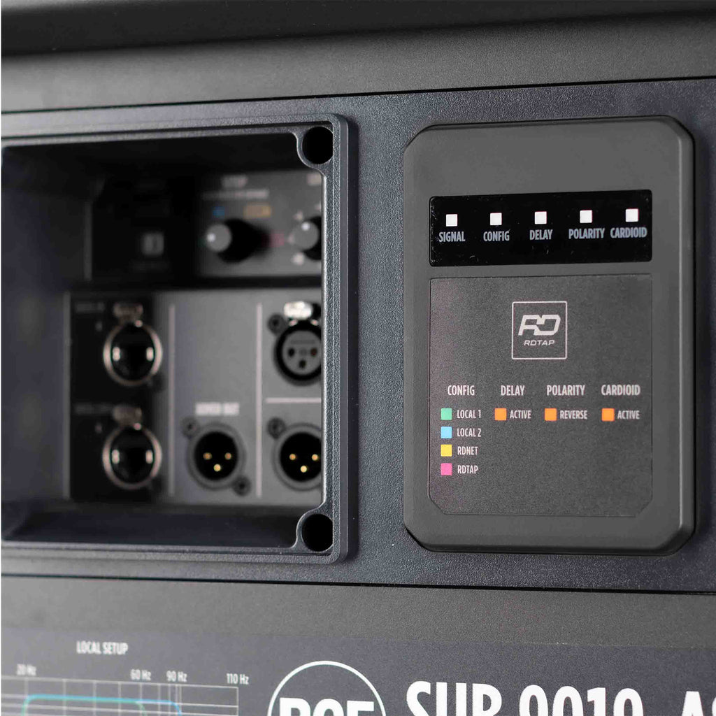 RDTap enables contactless communication, offering setup management and parameter updates, even when the unit is unpowered. By tapping the RDTap logo at the back panel with a smartphone running RDTap, the app transfers to the unit every aspect of the defined setup, including preset configurations, equalization, mid-low compensation for line arrays, and precise delay and time alignment settings. Or read the status of the speaker.
