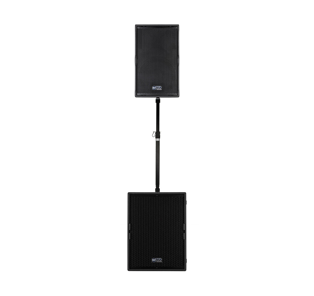 The RCF TTS 15-A is a compact, high output subwoofer module ideal in combination with TT+ two-way touring systems. The RCF TTS 15-A features low weight for easy handling, weatherproof cabinet, a 15” woofer powered by a 1100-watt RMS SMPS class-D Amplifier with full DSP and RDNet network capabilities.