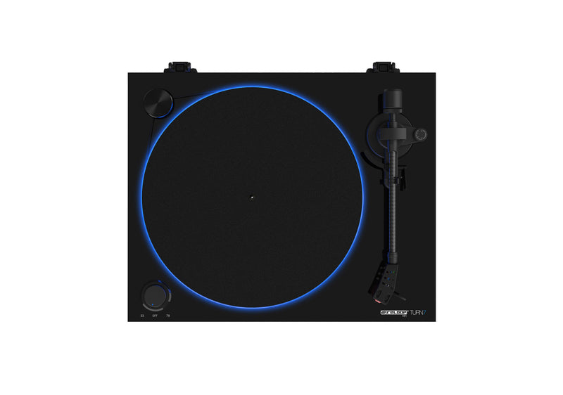 One of the unique features of the Turn 7 is the optional, blue platter illumination. Inconspicuously placed beneath the platter, multiple LEDs with a diffuser cover sets the mood and creates a warm and inviting ambience.