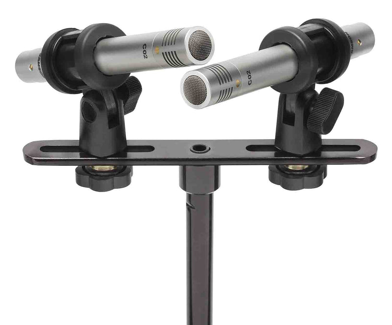 The Samson DMA2 Dual Microphone Adapter is a bar style stereo microphone mount that pairs mics from 2 to 7" apart. The dual microphone adapter mount features 2 sliding microphone mounts that lock into position for easy placement. The DMA2 is an ideal choice for crucial stereo capturing in recording, sound reinforcement, sound design applications, and more.