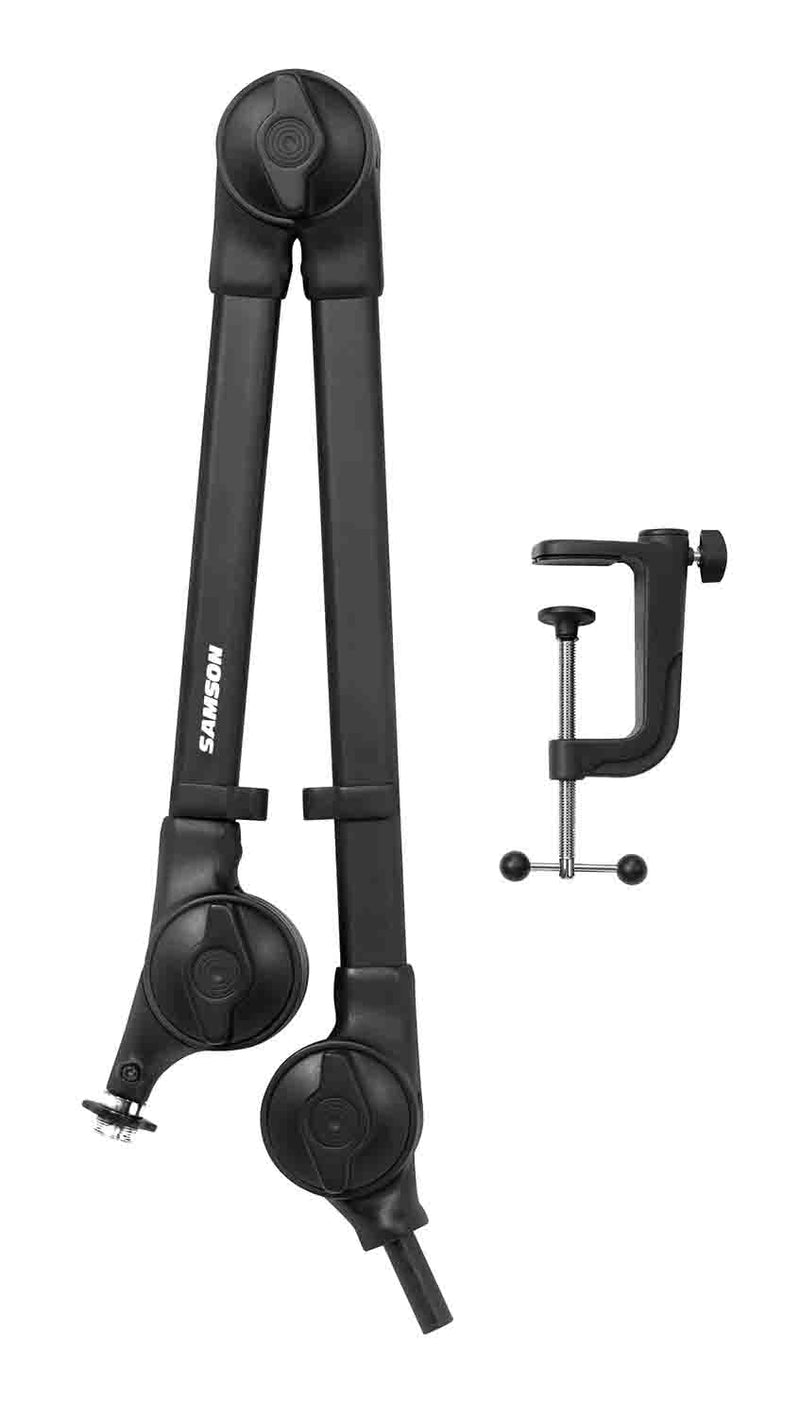 The Samson MBA26, 26-Inch Microphone Boom Arm is the perfect microphone accessory for podcasters, streamers, content creators and radio broadcasters. The durable aluminum construction and articulating design of the MBA26 provides a total arm reach of 26" while accommodating any mic weighing up to five pounds. Quick release friction hinges hold the stand at the desired angle and allow for easy and silent positioning to achieve optimal mic placement. The MBA26 can be attached to a table or desk with the included C-clamp mount which can swivel 360, perfect for any setup.