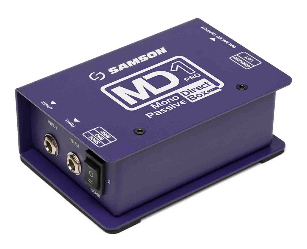 The Samson MD1 Pro Single Channel Passive Direct Box combines premium sound circuitry with durable, roadworthy construction, providing high-quality solutions for line, instrument and speaker level signals. The MD1 Pro allows balanced lines to be sent from your instrument long distances without inducing noise.