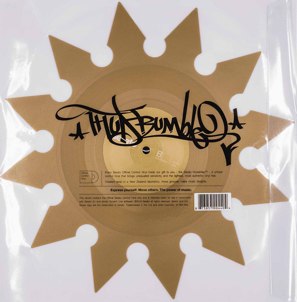 The Serato SCV-SP-063-W2 X Thud Rumble 12" Shaped Weapons of Wax Single Control Vinyl - Ninja is Turntable martial artists had better get into training to ensure they are battle-ready because Thud Rumble's warriors, in conjunction with Serato's (nerdy) master craftsmen have forged some crucial new tools for your armory: The Weapons of Wax.