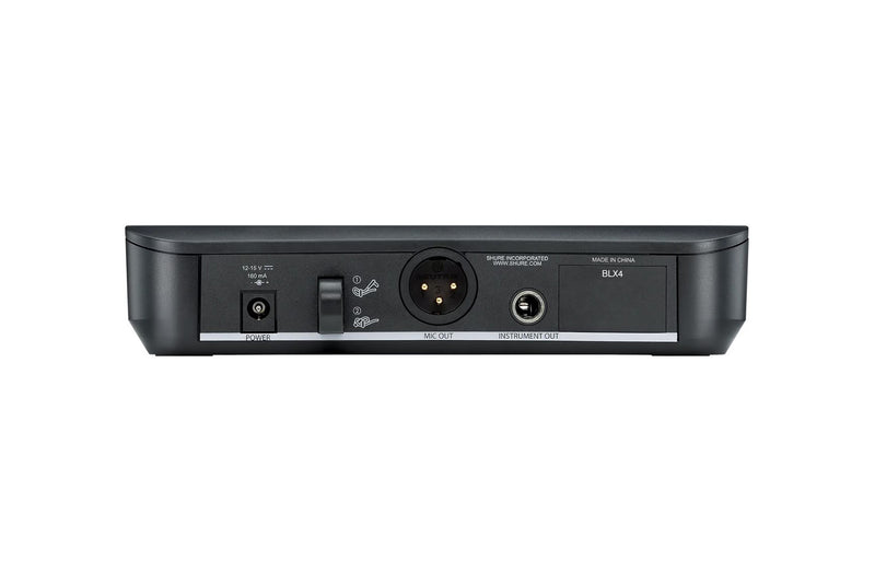 The Shure BLX24/PG58 Wireless Vocal System combines professional-quality sound with simple setup and up to 14 hours battery life for legendary audio performance right out of the box. The system includes BLX4 tabletop single-channel receiver, PG58 handheld transmitter, microphone clip, power supply, 2 AA batteries, and user guide.