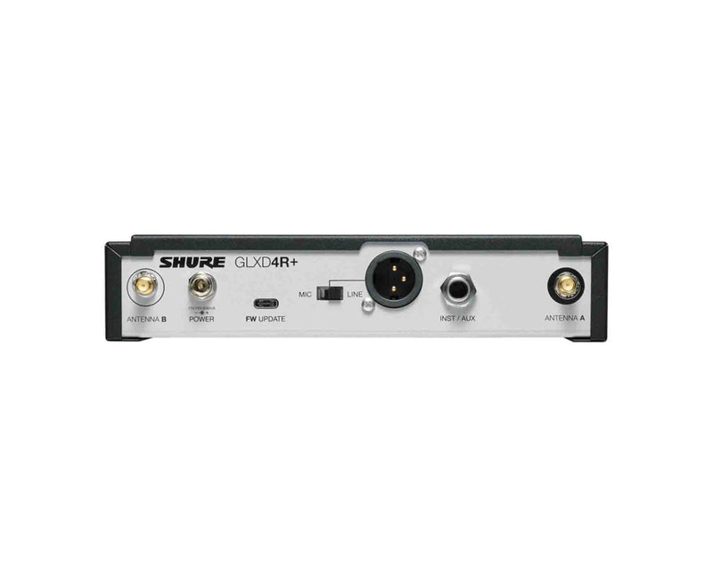 The Shure GLXD14R+-Z3, is a Digital Wireless Rack System. The new GLX-D+ Dual Band Wireless Rack System features the WA302 guitar cable and the GLXD4R+ half-rack receiver. The perfect combination of the automatic frequency management with the new Dual Band Technology provides reliable and consistent performance while Shure proprietary Lithium-Ion rechargeable batteries provide up to 12 hours of use. Go wireless without complication.