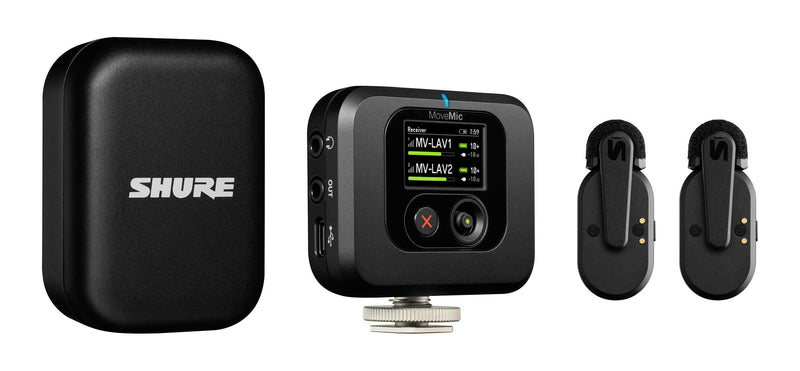 Elevate your content with the Shure MoveMic Two Receiver Kit, the ultimate solution for capturing professional audio on mobile phones, cameras or computers. This wireless clip-on microphone system comes with the MoveMic Receiver, expanding compatibility to mirrorless and DSLR cameras, computers, and third-party apps on your mobile phone. With up to 24 hours of recording, quick setup and two channels of high-fidelity audio, this wireless microphone for cameras lets you capture every moment.