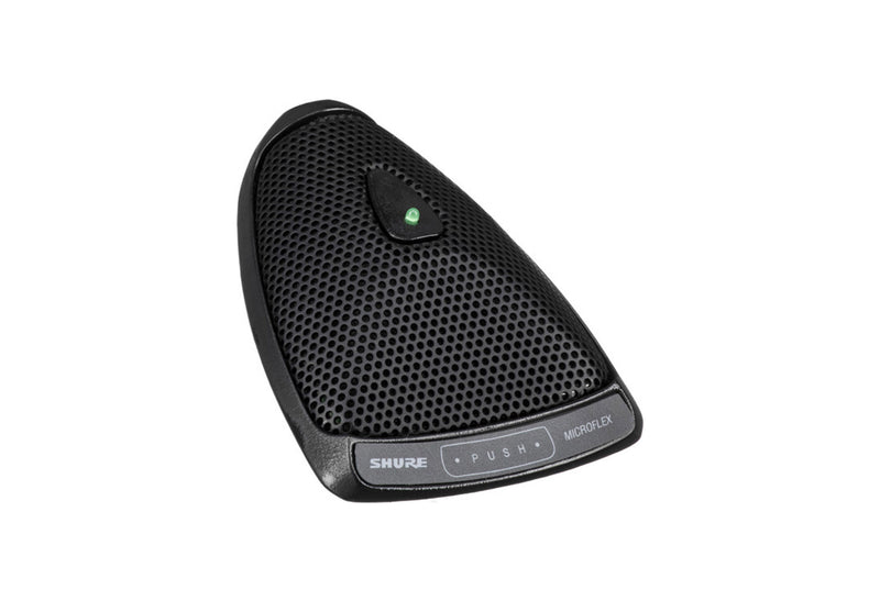 Every Microflex Boundary microphone feature one of the new interchangeable condenser cartridges. Available in cardioid, supercardioid and omnidirectional polar patterns, the Microflex cartridges give you superior Shure quality sound options for every installation. In addition, their programmable switches offer the flexibility to be set for Push to Talk, Push to Mute or Push On/Push Off modes. Attractively designed with a low profile, professional appearance, the Microflex Boundary microphones come with an easy-to-use paint mask for your custom-color installations.