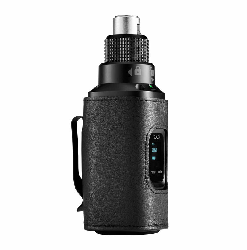 The Shure SLXD3 Plug-On Digital Wireless Transmitter with XLR Connector converts any XLR source, including dynamic and condenser microphones, for use as an SLX-D wireless transmitter. Featuring a patented locking ring for a secure, wobble-free connection, the SLXD3 sends 24-bit digital audio from any XLR source to an SLXD4 or SLXD5 Digital Wireless receiver via rock-solid RF connection. Use IR Sync to pair transmitters easily and quickly with your choice of SLX-D wireless receiver. A full suite of optional rechargeability accessories enables wireless excellence, wherever required, and the bright OLED screen displays battery life in hours and minutes when used with the optional SB903 Rechargeable Lithium-Ion batteries. Includes SLXD3 plug-on transmitter, a pair of AA alkaline batteries, zippered carrying pouch and a leather protective sleeve with an integrated belt clip.