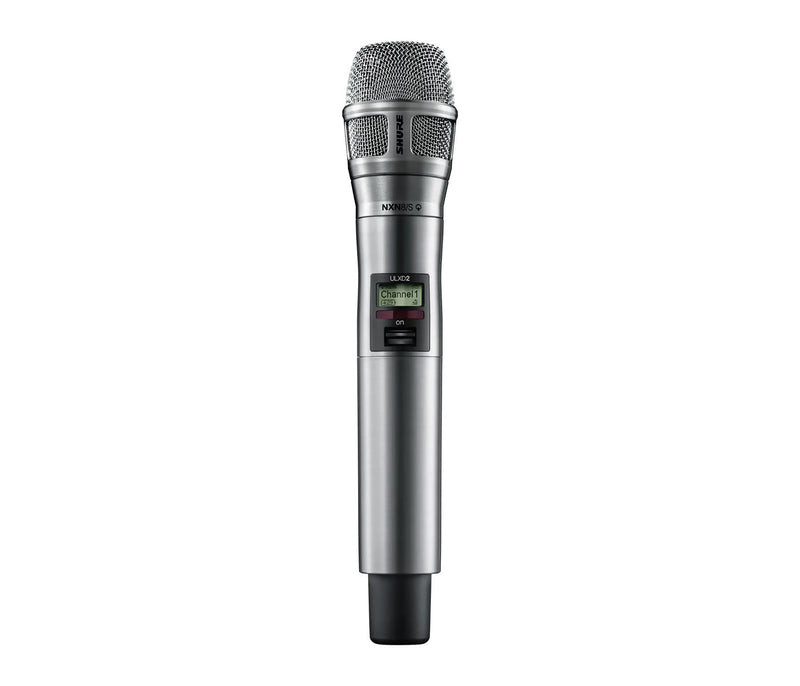 The Shure ULXD2/N8S, Digital Handheld Transmitter with Nexadyne 8/S Capsule is compatible with ULX-D Digital Wireless Systems. The ULXD2 Handheld Wireless Microphone Transmitter works with ULX-D Wireless Systems, and features the Nexadyne cardioid dynamic microphone with Revonic Transducer Technology.