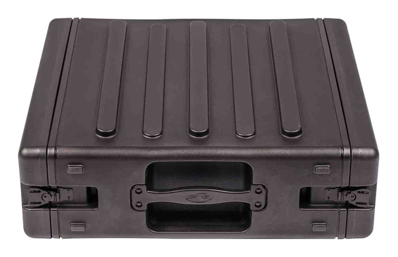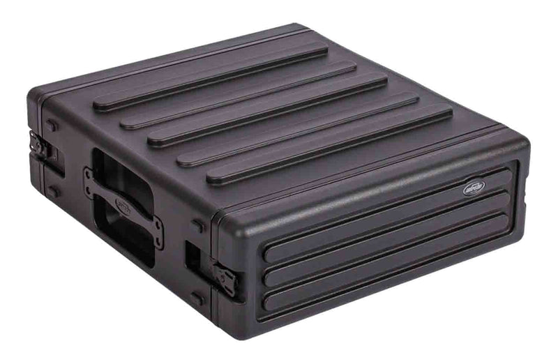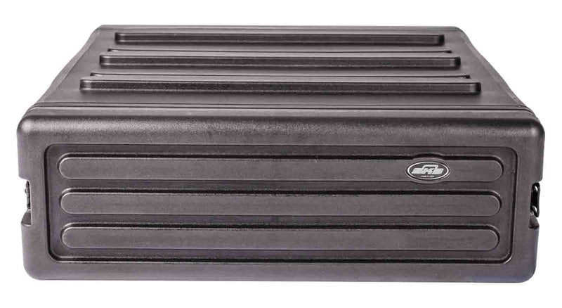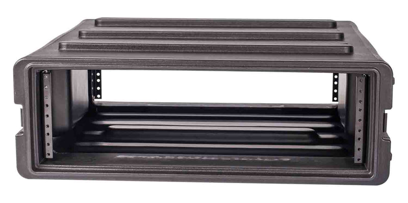 The SKB Cases 1SKB-R3U 3U Roto Rack Case are roto-molded of Polyethylene (LLDPE) for extra strength and durability. The exteriors feature SKB's recognizable bar design that signifies the rack unit size on the front and rear lids. Molded bars on top and bottom also provide interlocking capabilities allowing you to easily and securely stack them with SKB's Shallow Racks and Roto Rolling Racks, making transport even more convenient and secure. Lids include rubber gasket seals to keep water out. Other standard features include front and rear steel threaded rails and rack screws (10-32 thread), recessed steel Mil-Spec twist latches, flush carry handles, and non-slip rubber feet. All Standard Roto Racks are 17.6" deep from front rail to rear rail.
