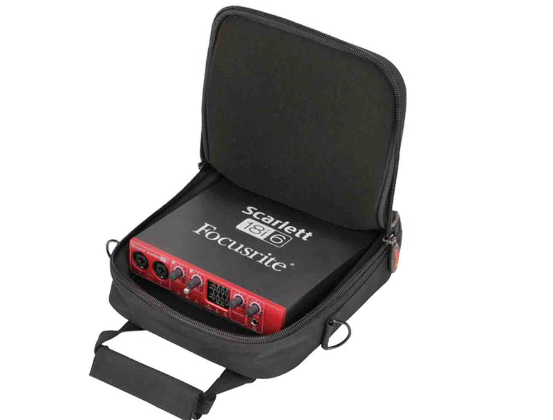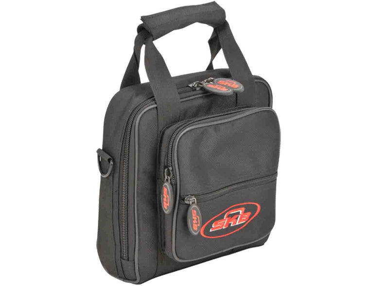 The  SKB Cases 1SKB-UB0909 is an Universal Equipment and Mixer Bag is the perfect solution for protecting and transporting your gear from one gig to another with sizes to accommodate the most popular mixers, drum machines, recording interfaces, midi controllers, light panels, and other equipment. The 1SKB-UB0909 Mixer Bag interior measures 9" x 9" x 2.75" and will accommodate smaller equipment like the Behringer Xenyx 802, Mackie 402-VLZ3, Boss DR-3, Focusrite Scarlett 8i6, Roland R-44, TASCAM DR-680, and Avid Mbox Mini Ultra Compact to name a few.
