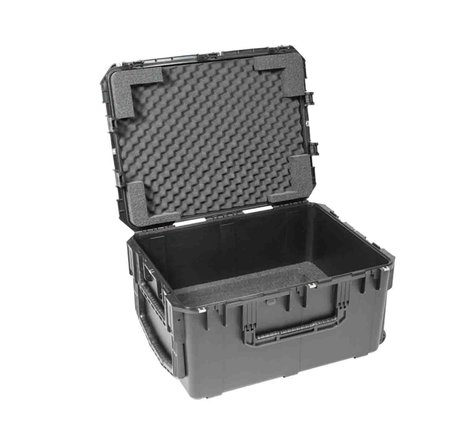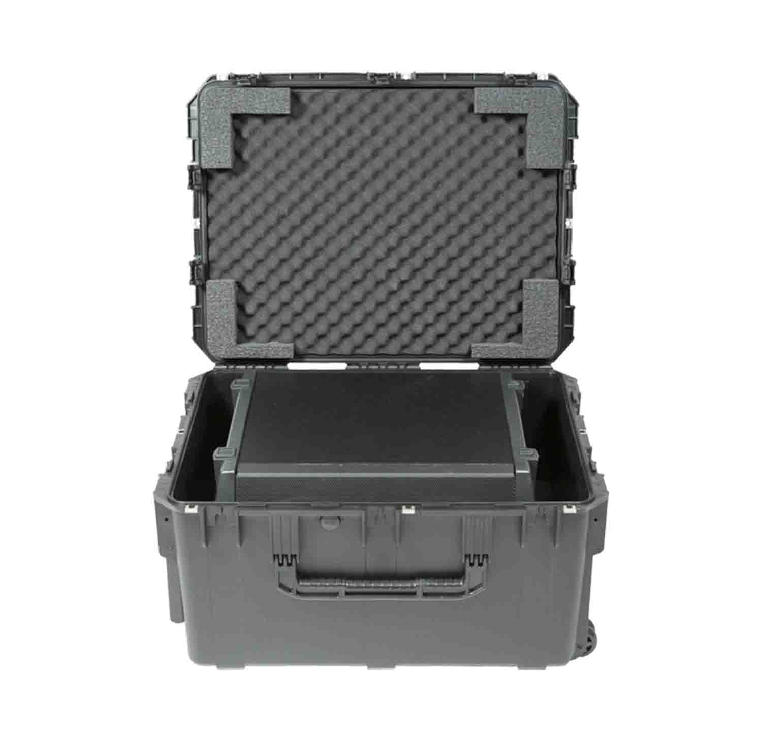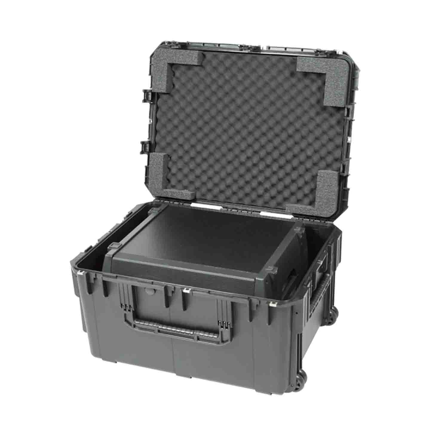 The 3i-2922-16B2 Bose B2 Subwoofer Case also features three protected hinges with stainless steel pins to provide lid stability, SKB's trigger release latch system (retrofittable with TSA recognized and accepted locks), an oversized double grip carrying handle to balance a heavy load, comfortable oversized snap-down rubber over-molded cushion grip handles on each end for two-person carry and wide-set double wheels for a smooth ride and easy transport.