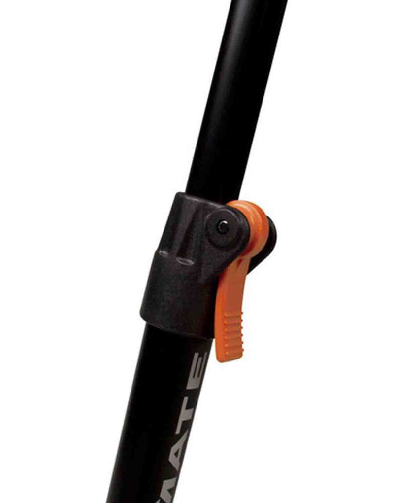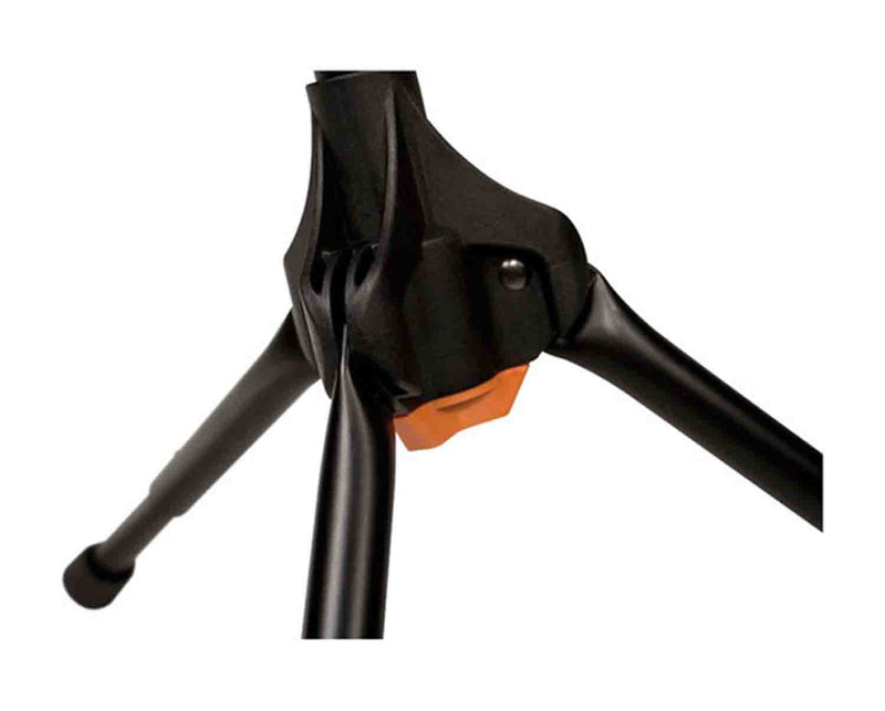 The Ultimate Support AMP-150 Genesis Amplifier Stand by Ultimate Support features a position-locking, tripod design with long rubberized hooks on which to rest your amp. It weighs only 3.1 lbs, folds up with ease and, and holds up to 75 lbs. An oustanding feature of this stand is the included mic boom attachment. The top tube has mic boom threads so there is no need to carry an extra mic stand. It has three tilt positions to accommodate the audience or band.