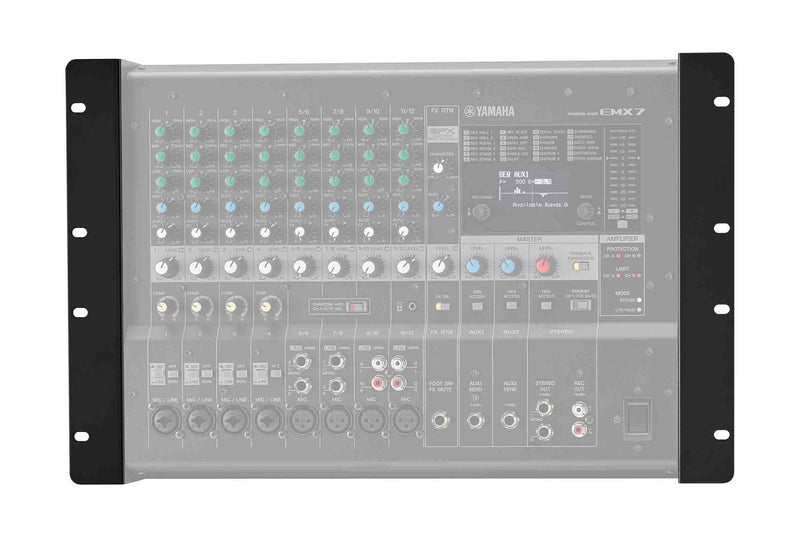The Yamaha EMX7, 12-channel Powered Mixer - 1420W. Box-type robust and portable powered mixer featuring high efficiency power amplifier of 710W and mixer with comprehensive effects, Flex 9 Graphic Equalizer, speaker preset and built-in feedback suppressor.