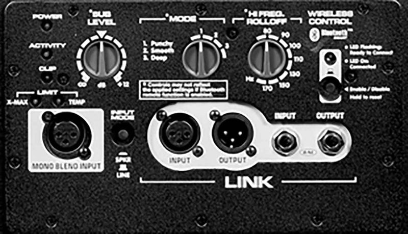 Inputs – XLR: 1 Mono blend line input, 2 Link Input & Link Output